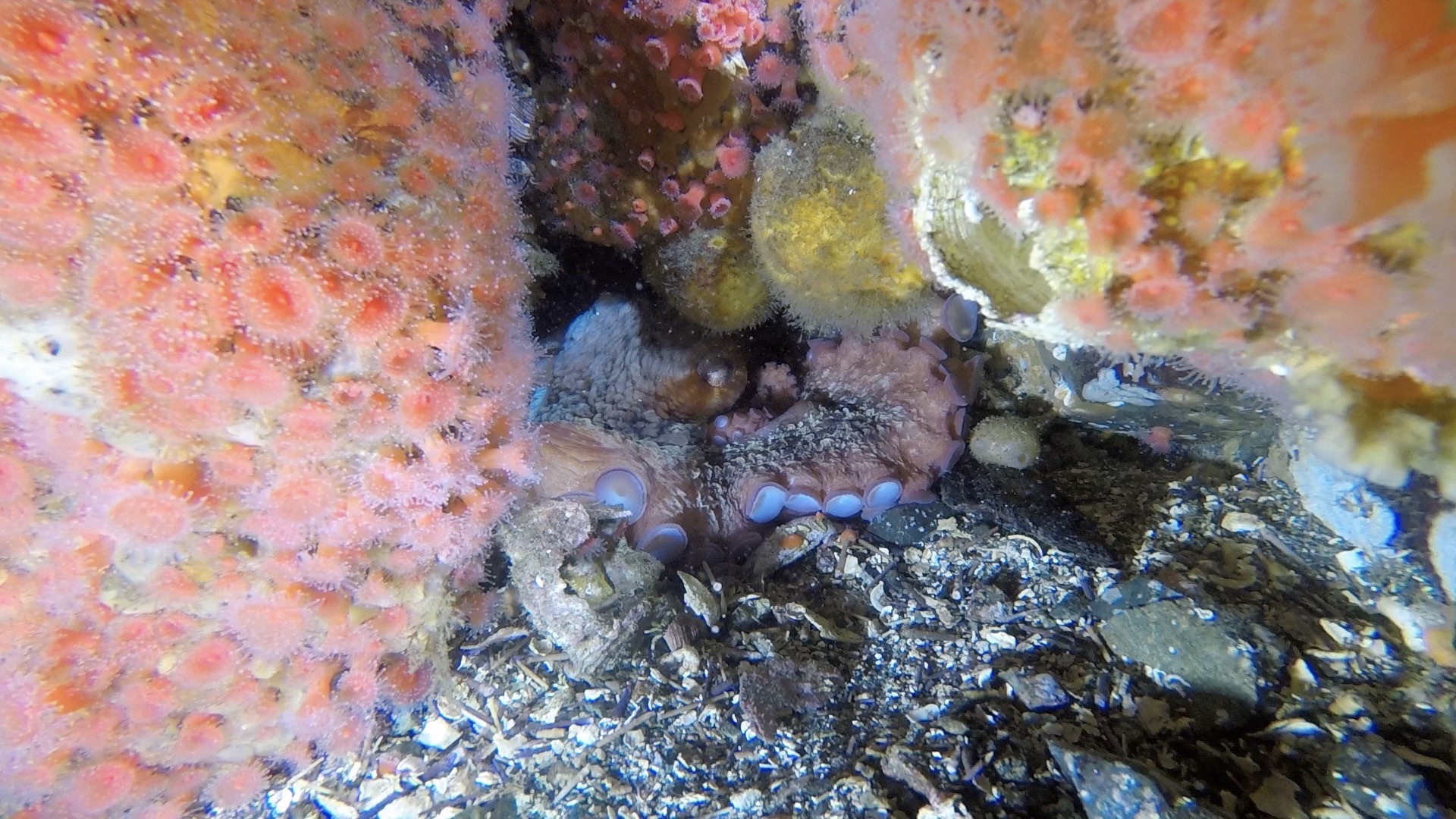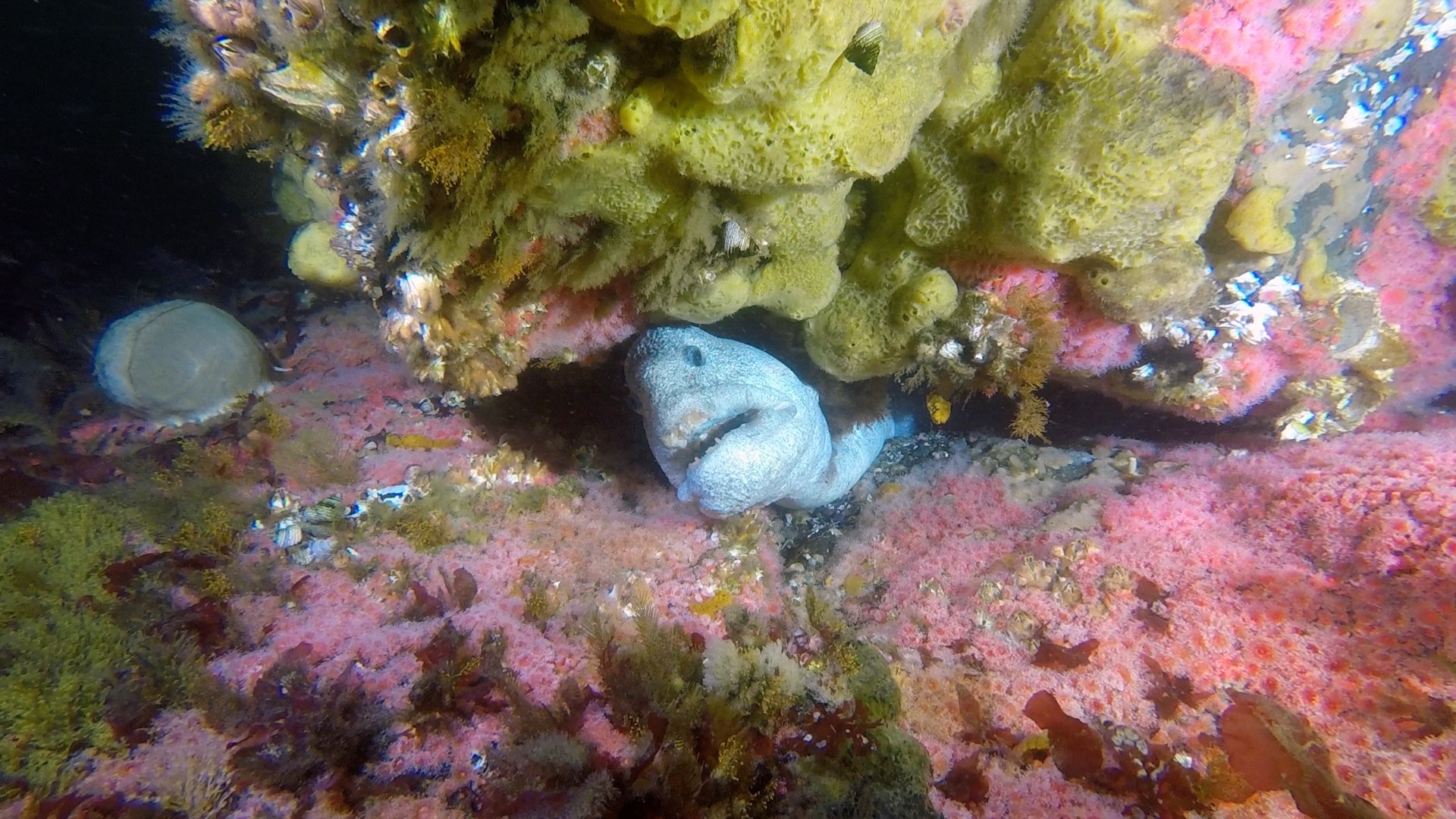 There is a good chance you might see a wolfeel on this dive. A couple of dens are found at this site along with walls and rocks covered in sponges and anenomes.